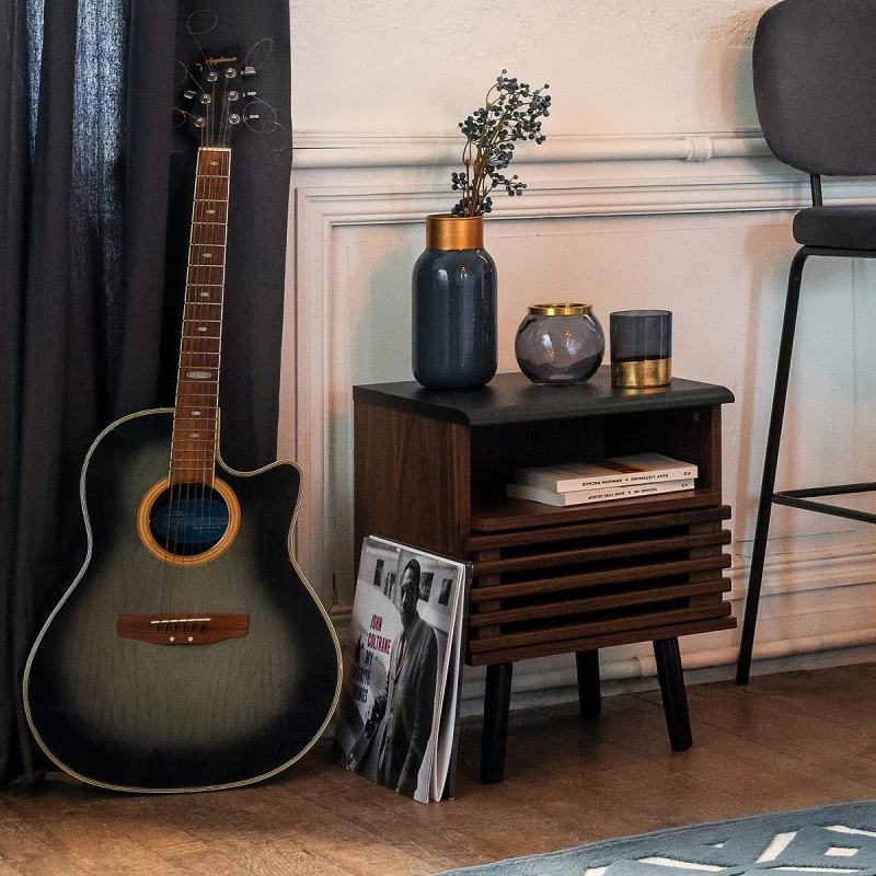 Table de chevet Ă 1 porte de la marque Atmosphera. Ce modĂšle Asmar apportera une touche d’Ă©lĂ©gance Ă votre intĂ©rieur avec son coloris noir et naturel foncĂ©.Â