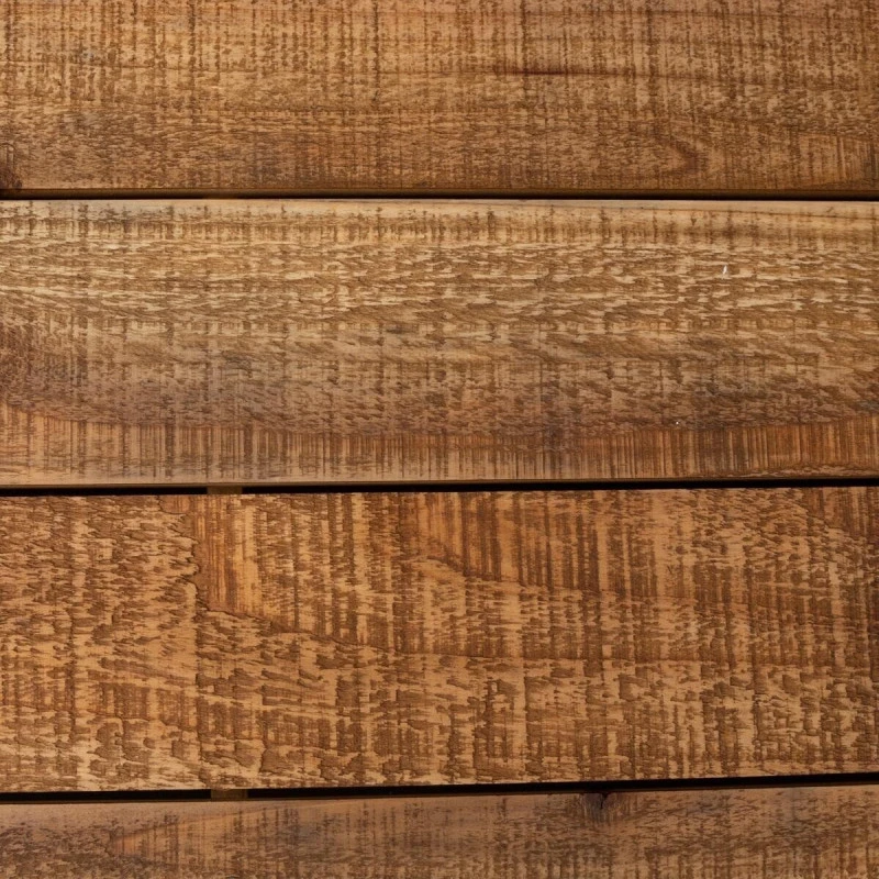 Structure en fer noir, plateau en sapin massif et étagères en MDF placage sapin. Livré entièrement monté.