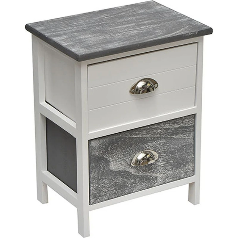 Chevet Apothi 2 Tiroirs Blanc Gris Cérusé