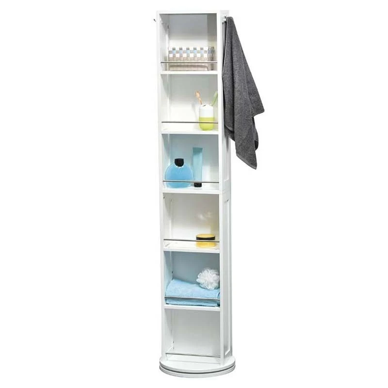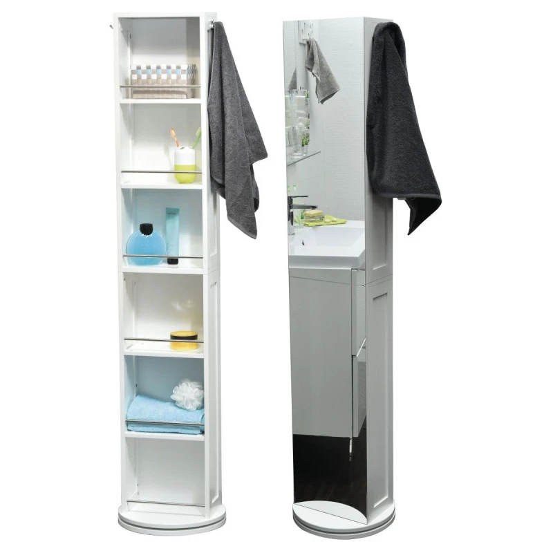 Colonne de salle de bain 2 en 1 idéale pour les petits espaces avec son aspect rotatif à 360°.
