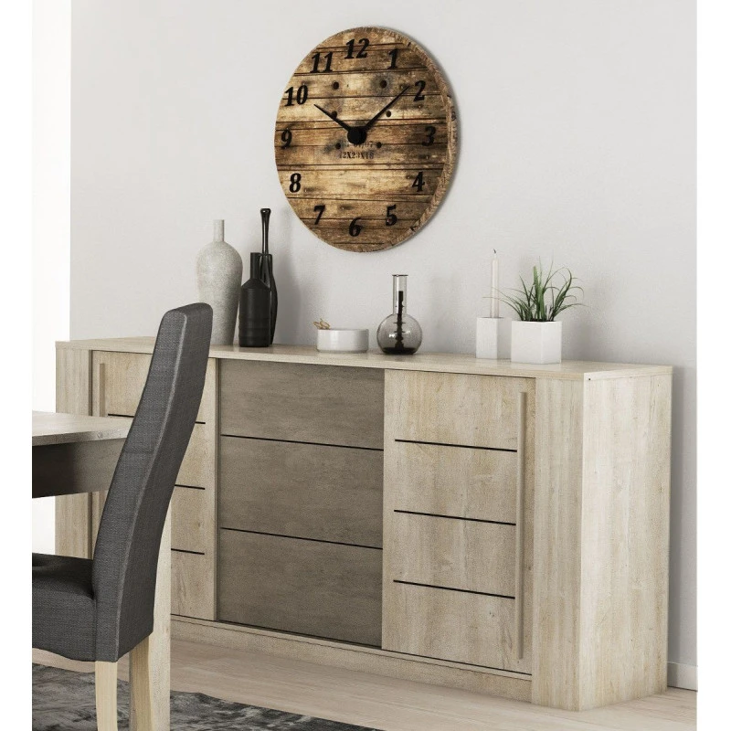 Demeyere Bahut 3 Tiroirs + 2 Portes CANNES Chêne Champagne/béton Clair