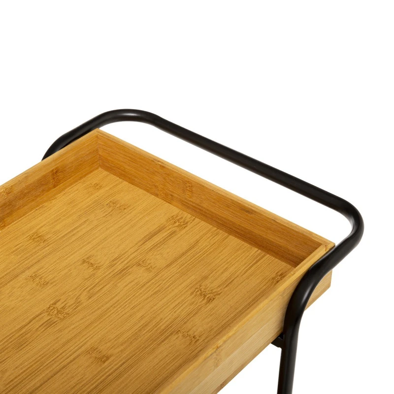 Pratique et esthétique, cette desserte 3 niveaux bambou avec structure en métal apportera du rangement à votre cuisine ou votre salle de bain.