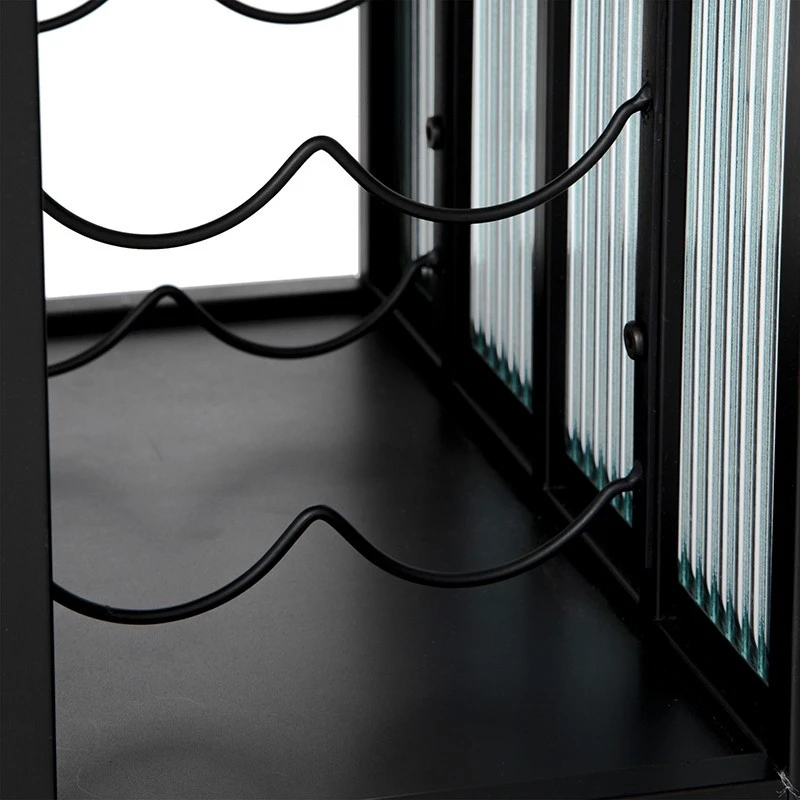 Elle dispose de nombreux compartiments notamment pour ranger les verres à pied et les bouteilles.