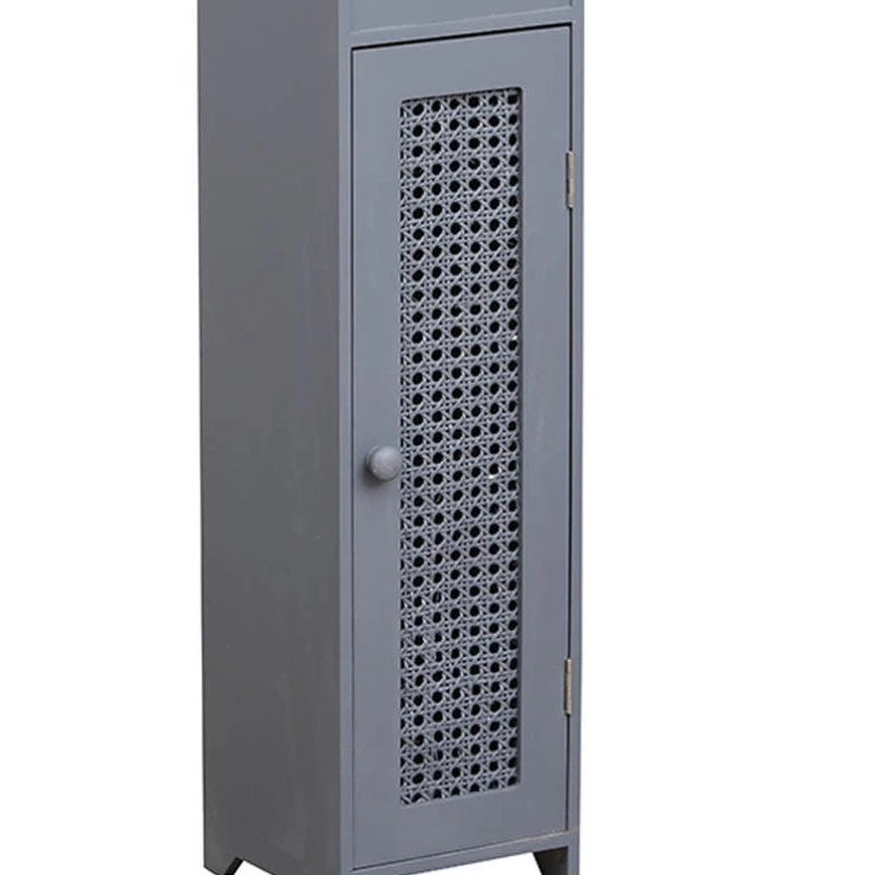 Découvrez le meuble réserve et dérouleur avec porte cannage en coloris gris.
