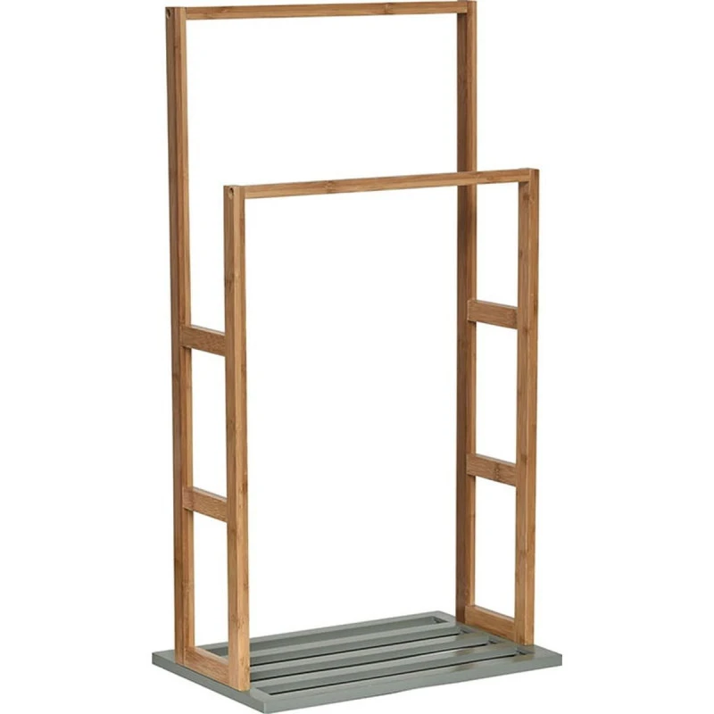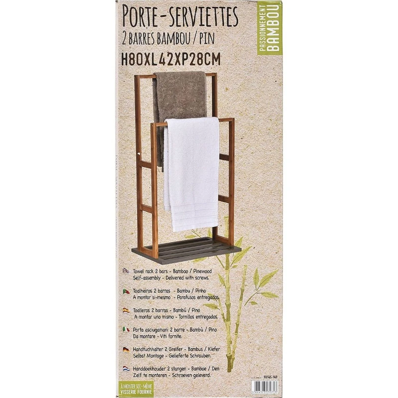 Porte Serviette Bambou 2 Barres Naturel Et Kaki