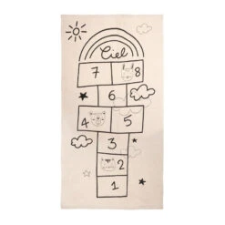 Pour amuser vos enfants tout en dĂ©corant leur chambre : le tapis marelle en coloris beige 80 x 150 cm de la marque Atmosphera.Â